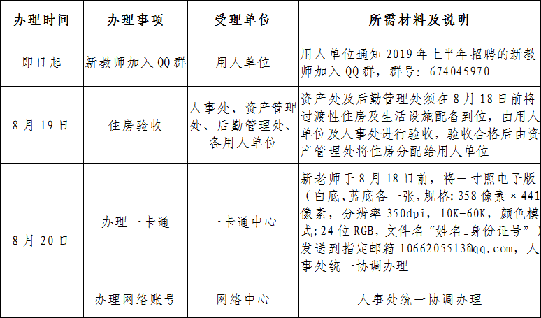 为做好2019年上半年招聘教师报到安置工作,给新教师们提供良好的工作、学习和生活环境,现就报到相关事宜通知如下: