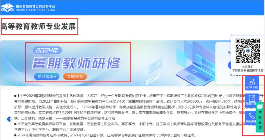 附件:2024年暑假教师研修高校教师学习页面截图